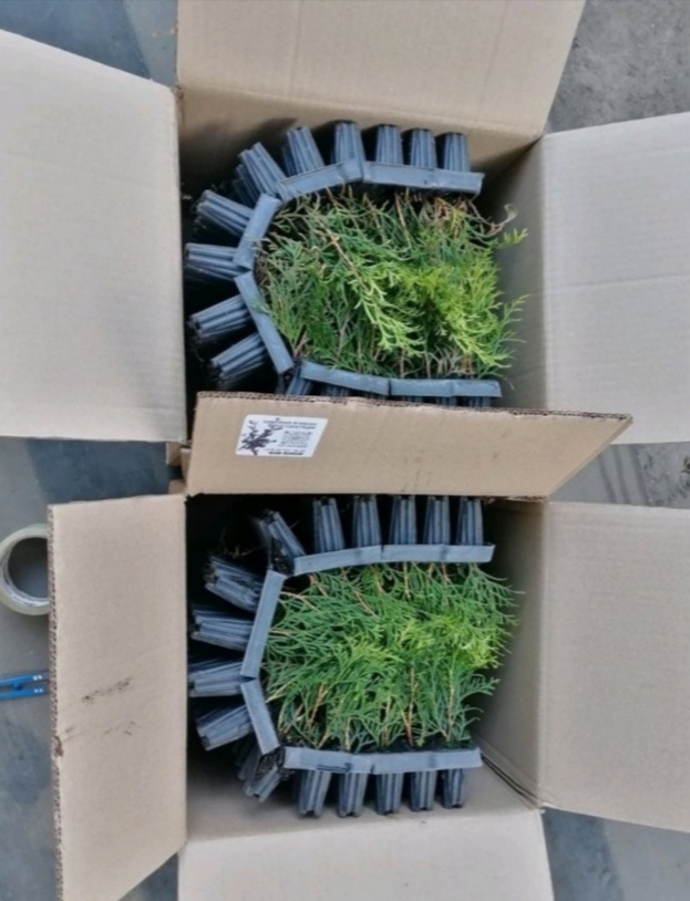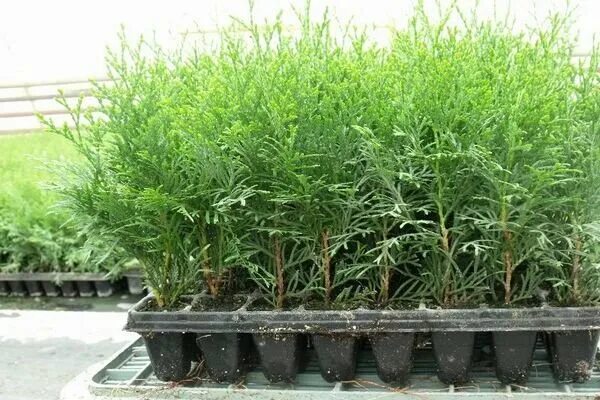 В наличии туи в кассетах и в ящиках.